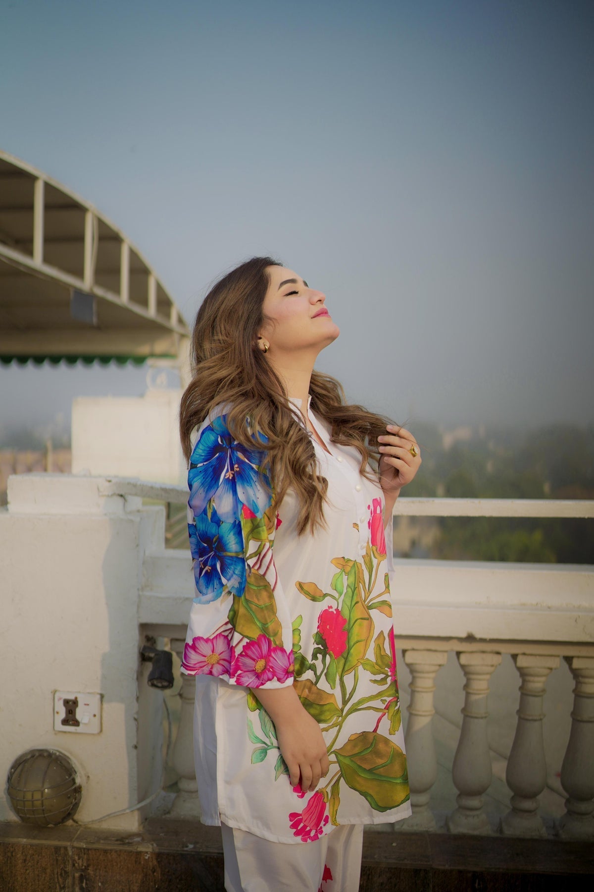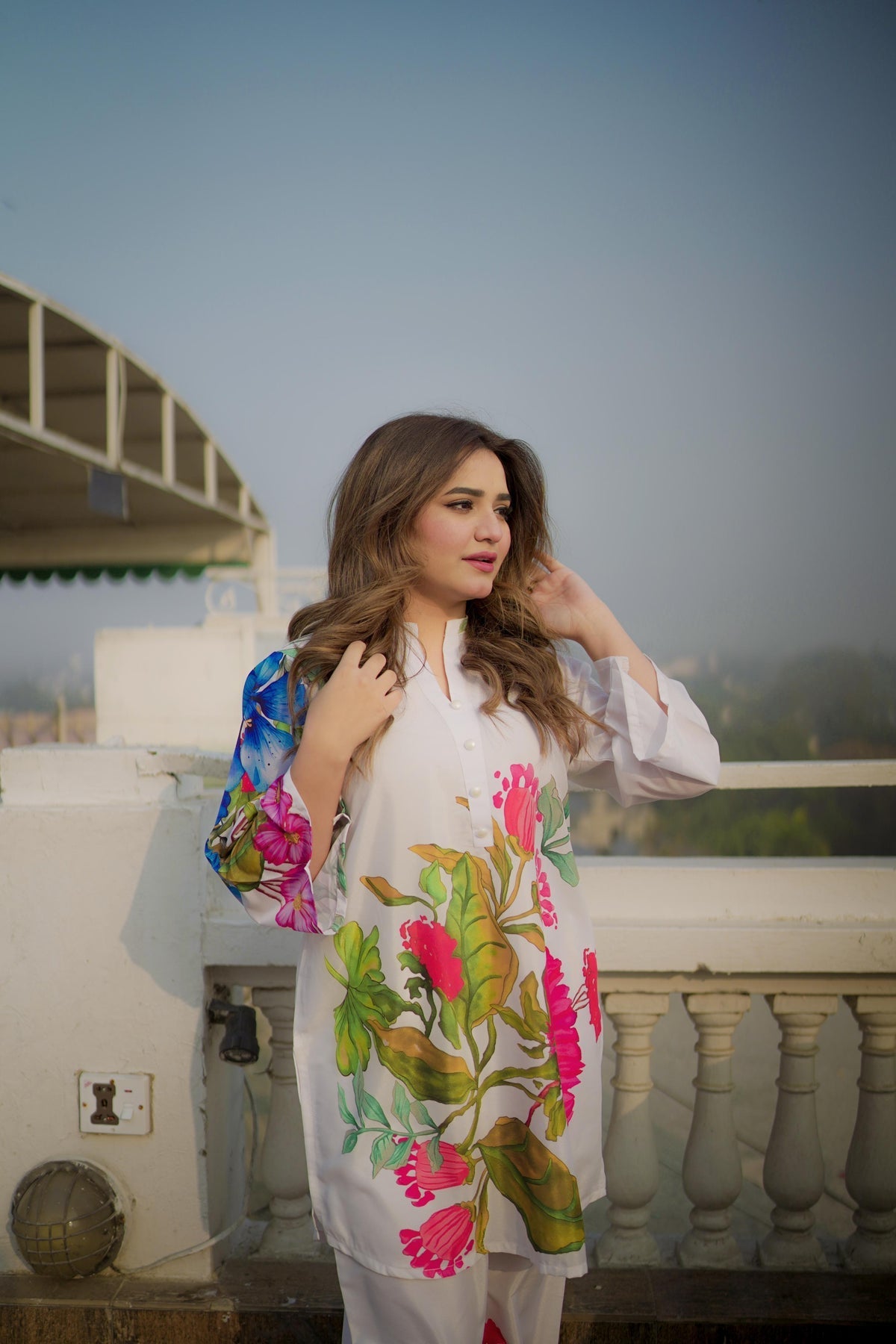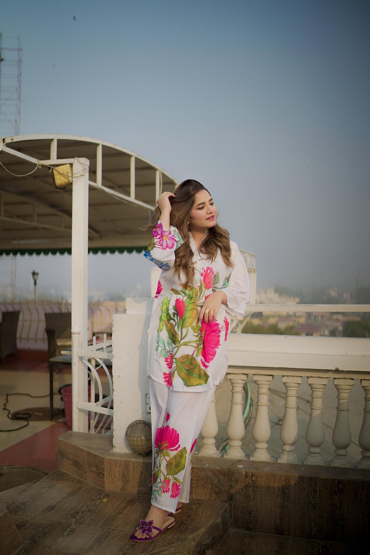 Elevate your style with the Lily Co-Ord Set, meticulously crafted from premium crepe lawn fabric to ensure both comfort and sophistication. This ensemble features a harmonious blend of white and pink hues, perfect for adding a touch of elegance to your everyday wardrobe.