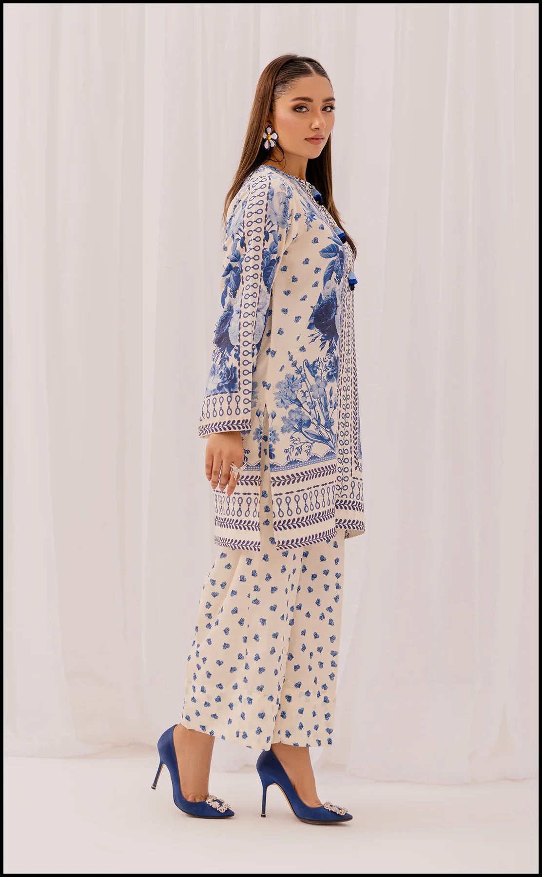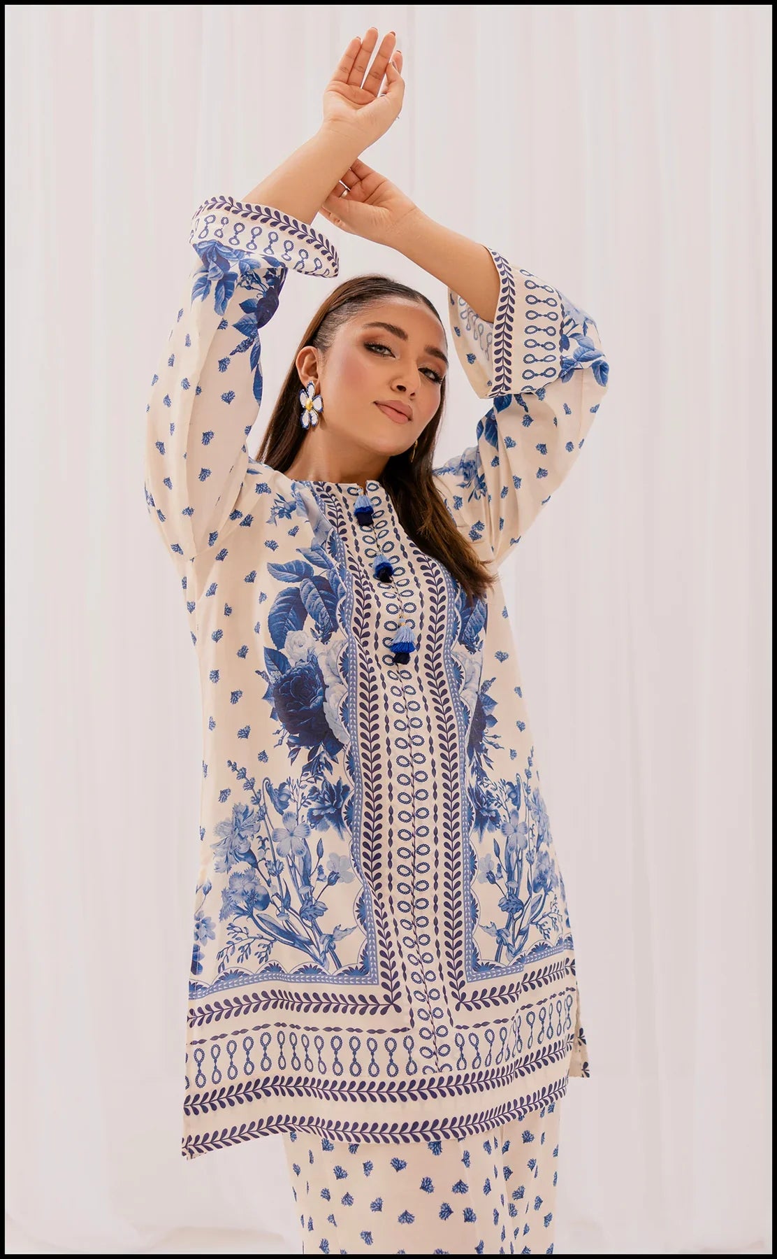 Elevate your summer wardrobe with the Royal Blue Bloom – a stunning 2-piece Co-Ord set designed for the modern, playful woman. Crafted from luxurious Lawn Silk, this serene blue and white ensemble features vibrant floral prints that bring a fresh, lively energy to your look. The shirt is beautifully adorned with tassel details on the front, adding a touch of charm and movement to every step. Paired with matching pants, this outfit is perfect for those funky, carefree summer days.
