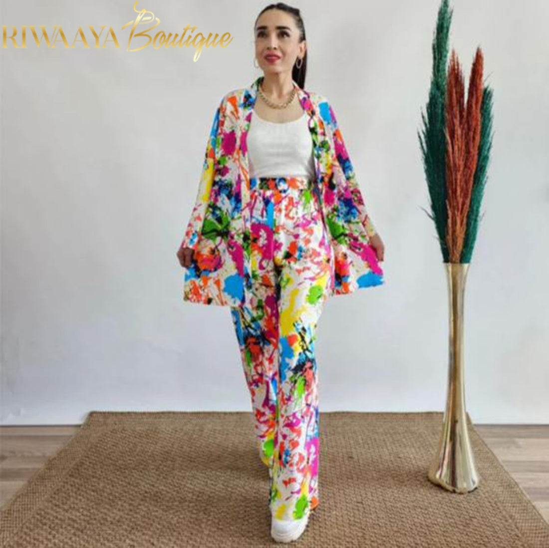 Vibrant Abstract Print Women 2-Piece Suit – Expressive & Elegant