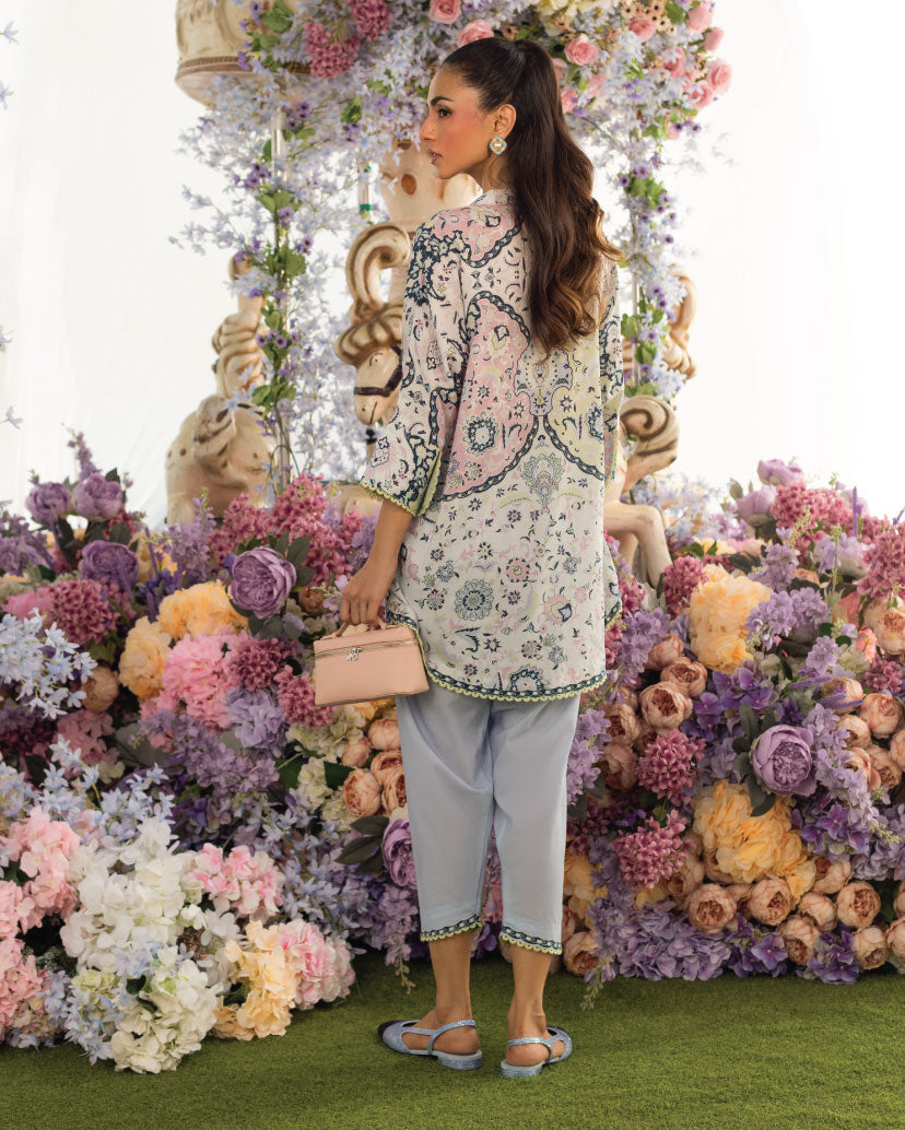 Step into a world of color and adventure with our Botanical Dreams - Pastel Lawn Ensemble Set This unique two-piece ensemble showcases a captivating blend of tropical motifs and vibrant hues, perfect for those who love to make a bold statement. Crafted from soft and breathable Swiss lawn fabric, this set offers an effortlessly chic look and all-day comfort. Whether you’re off to a casual outing or a lively evening gathering, Tropical Oasis adds an exotic flair to your style.