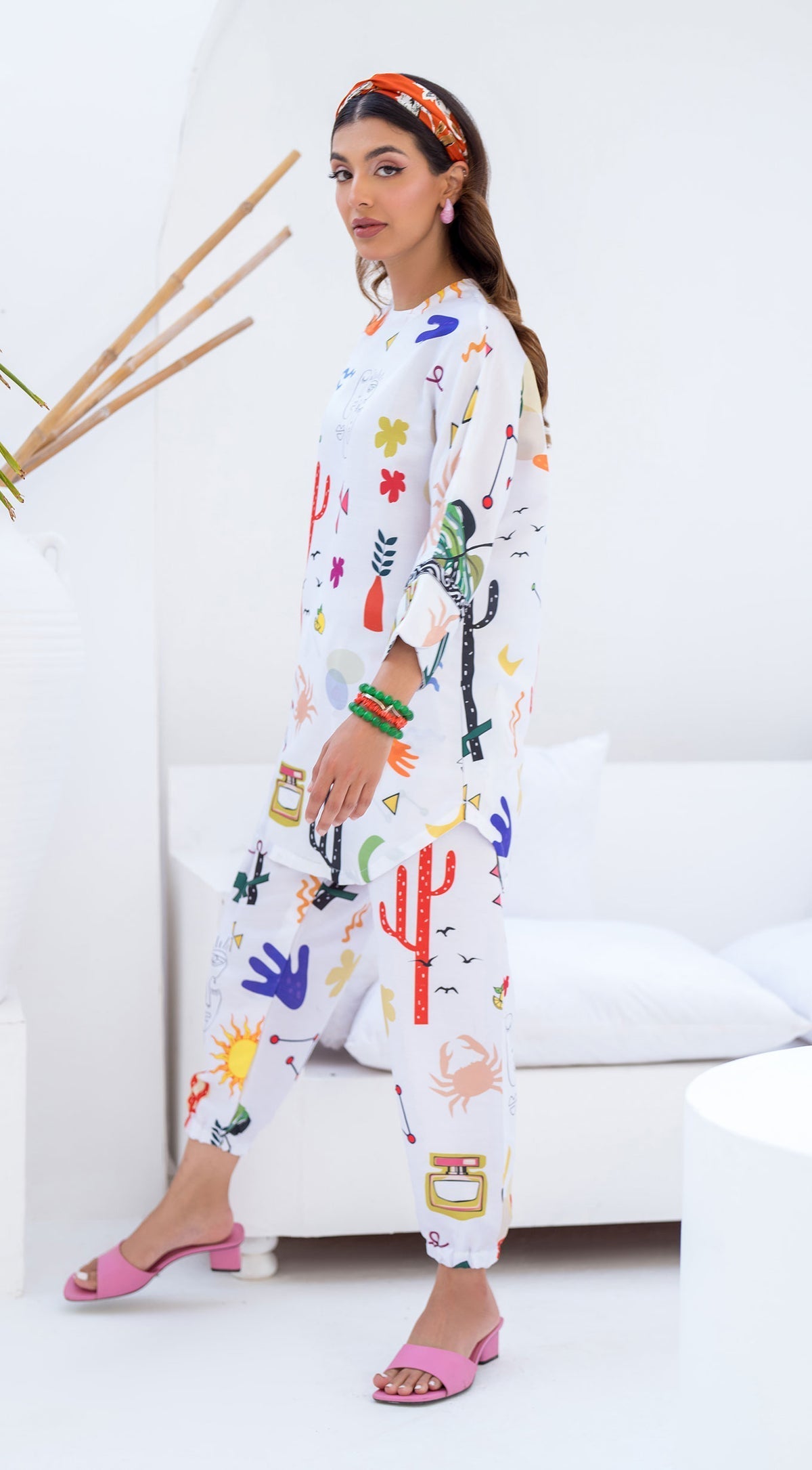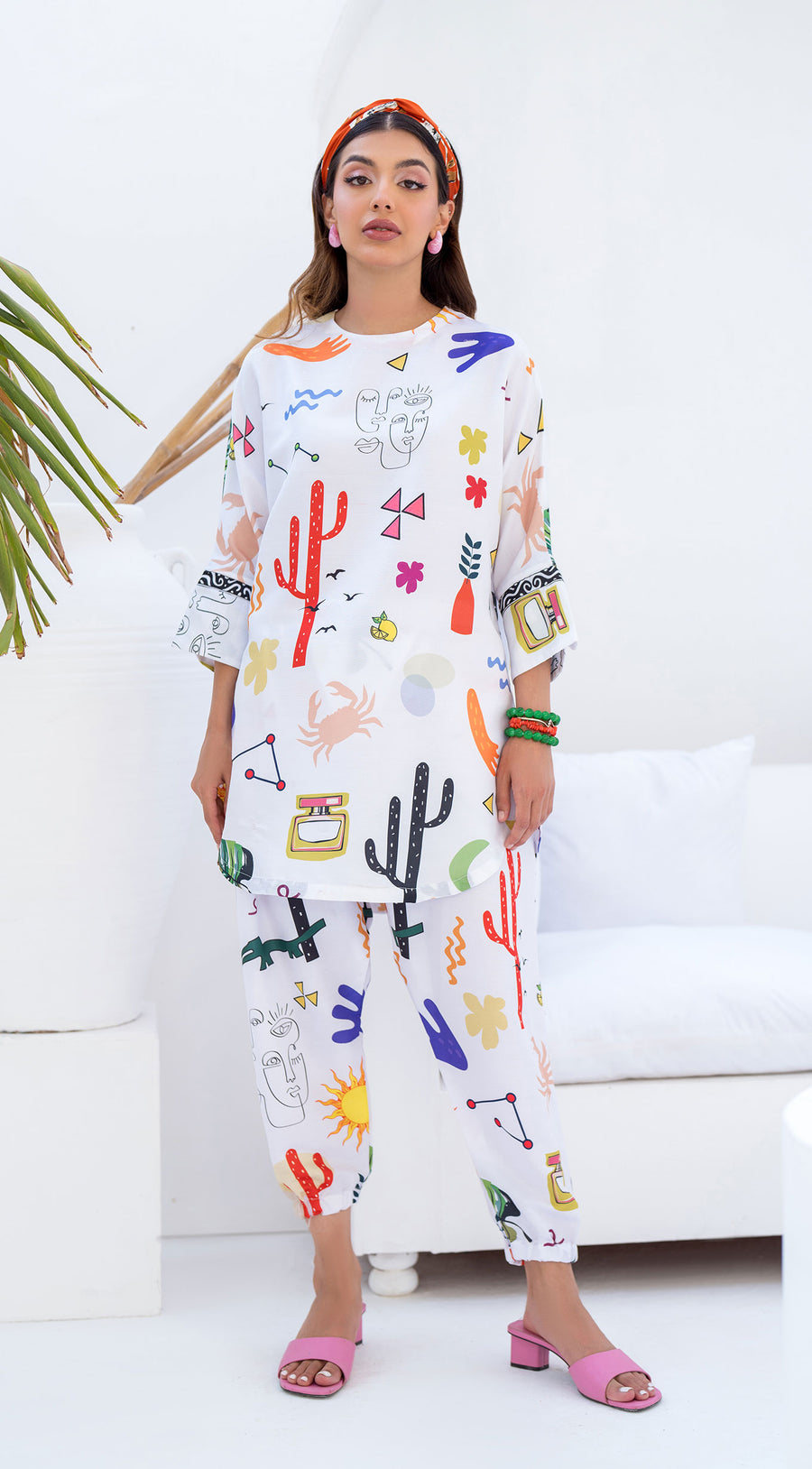 Step into a world of color and creativity with the Desert Dreams – Vibrant Artistry Set. This unique two-piece ensemble showcases a captivating blend of bold motifs and vibrant hues, perfect for those who love to make a confident style statement. Crafted from soft and breathable winter crepe fabric, this set offers a chic look with all-day comfort.