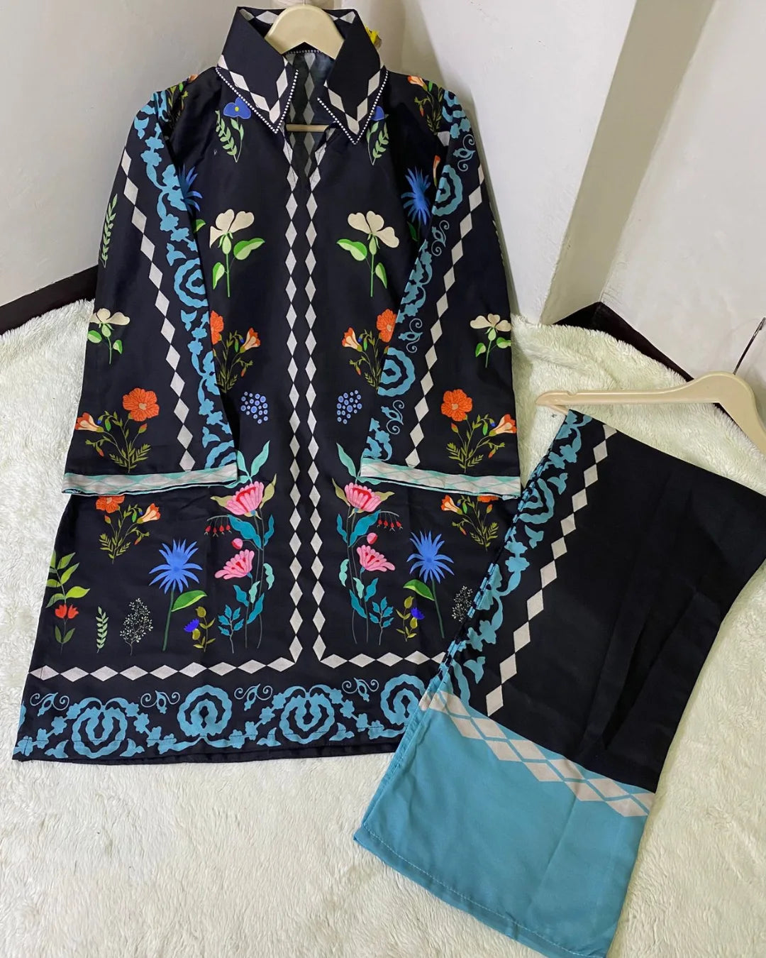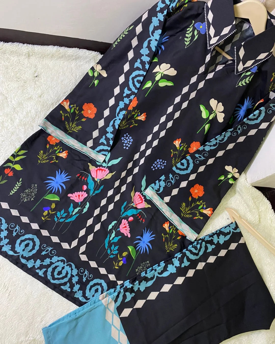Step into the season with timeless sophistication in our Enchanted Garden Premium Digital Printed Lawn 2-Piece Set. This two-piece outfit blends modern tailoring with artistic floral elegance, making it your go-to choice for daytime charm or evening grace.