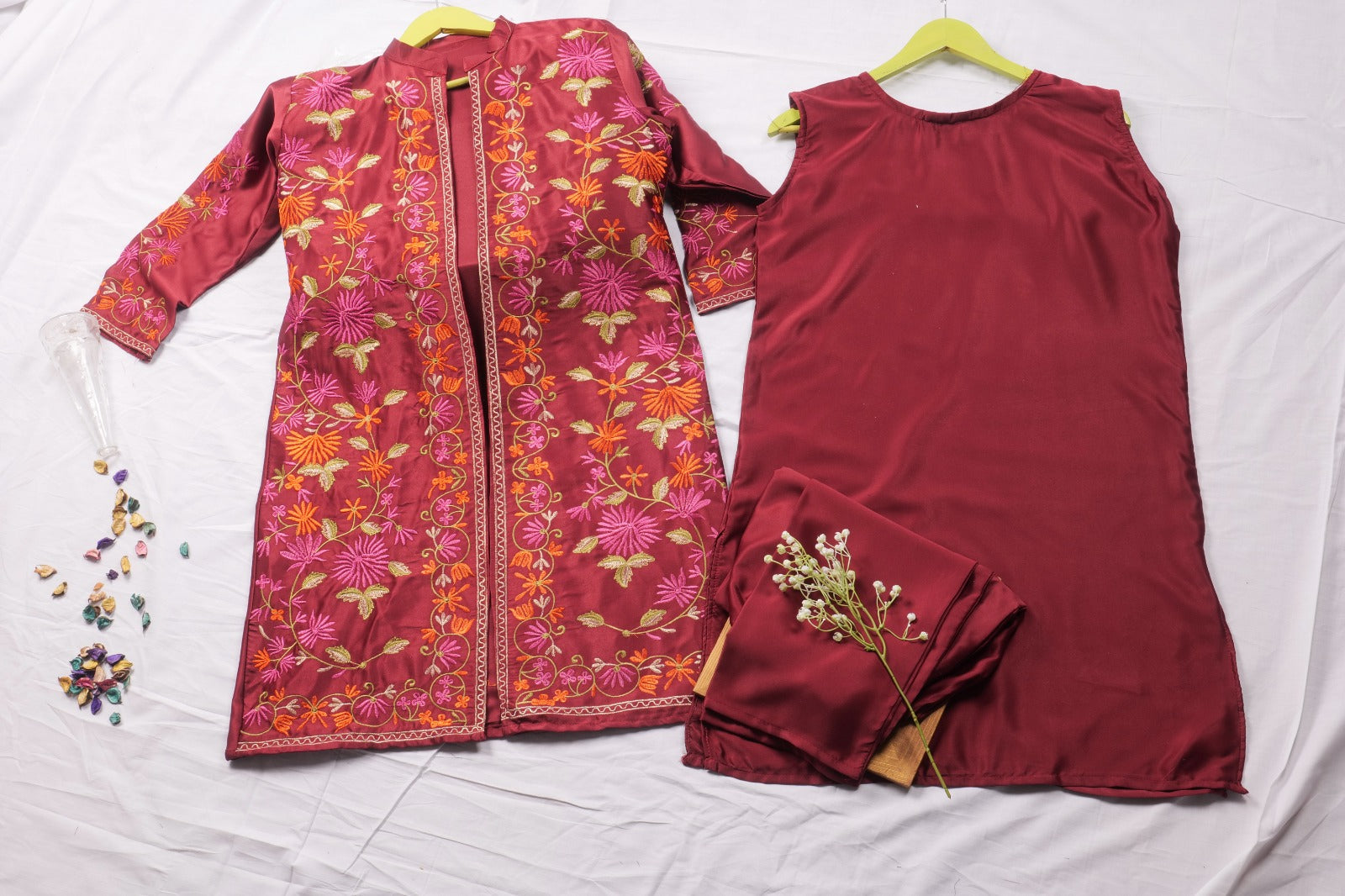 - Luxurious Ensemble: Front Full Heavy Embroidered 3-Piece Gown Set π