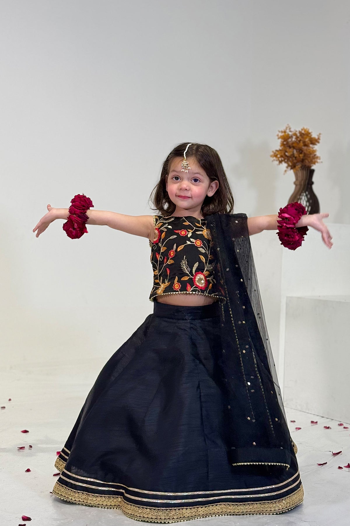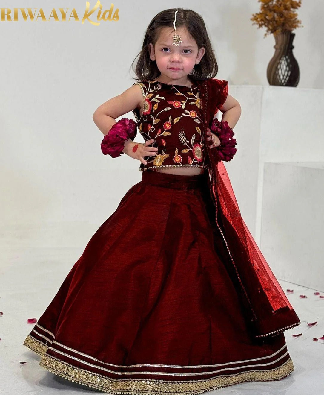 Introducing “Fairy‑Tale Flair” – A Mini Maharani Ensemble Transform every tiny princess into a vision of dreamy elegance with our 3‑piece lehenga choli set, lovingly crafted for ages 6 to 12.
