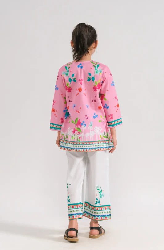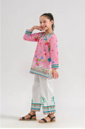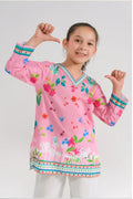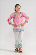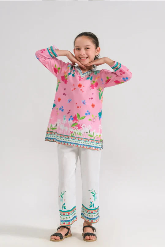 Girls Ethnic Wear – Pink Floral Kurti & White Trousers | 2-Piece Summer Kurti Set (Ages 6–14)