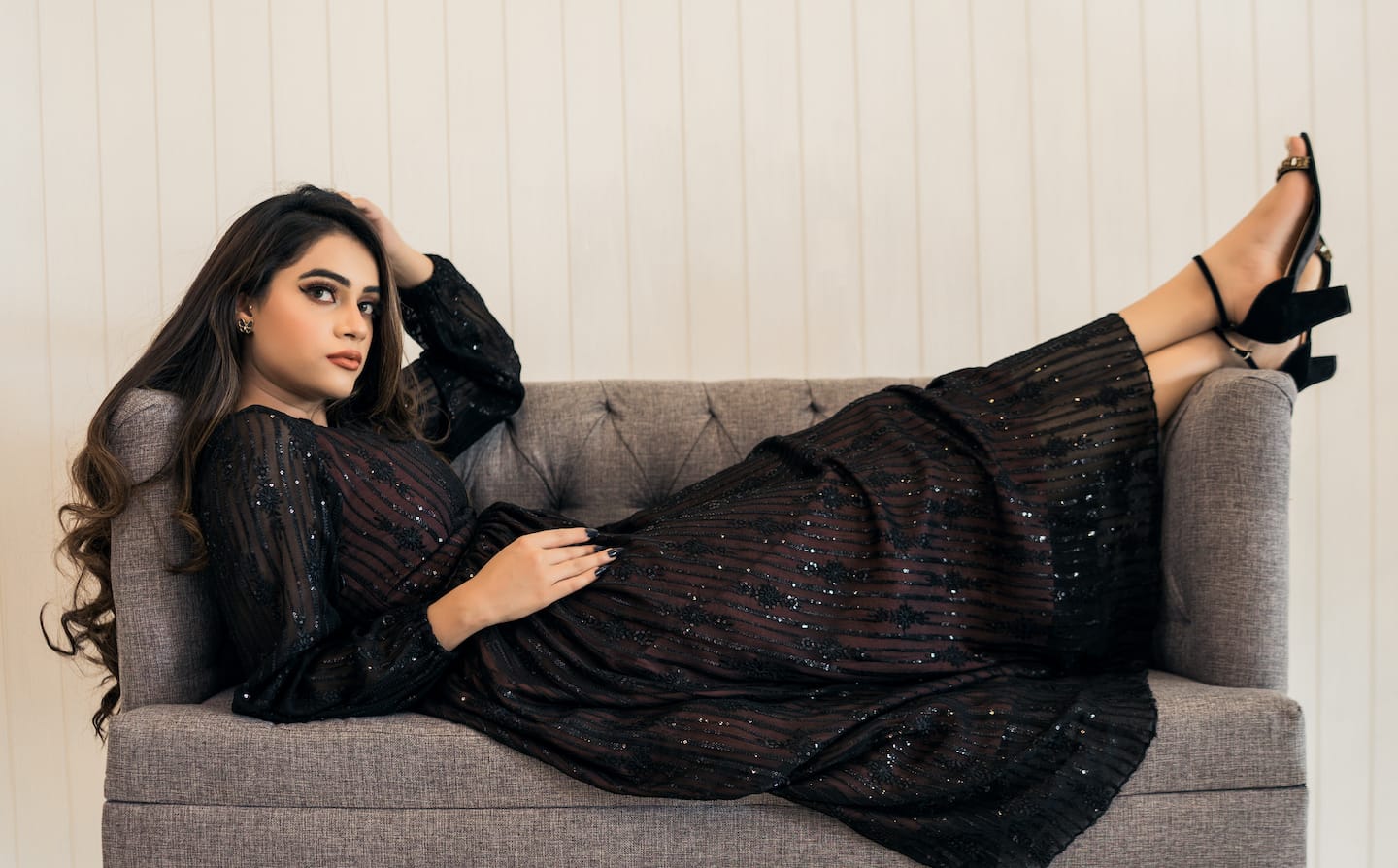 Glamorous 2-Piece Ensemble: Heavy Sequence & Stone Work