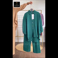 Indulge in the elegance of our Mint Mystique Suit, tailored for those who appreciate a blend of contemporary western styling and comfort. Crafted from premium China Double Georgette, this two-piece set promises both durability and a luxurious feel.