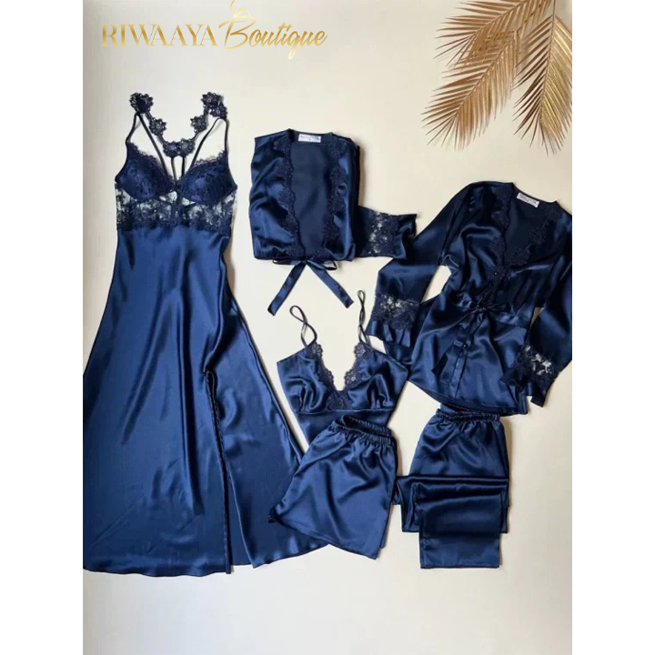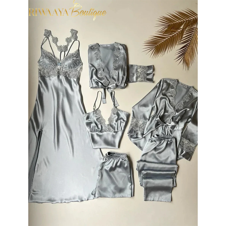 6 PCS LONG SILK NIGHTY SET FOR WOMEN