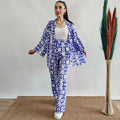 Design: Showcasing a contemporary geometric print in eye-catching hues, this coordinated top and trouser set makes a bold style statement. The structured yet easygoing silhouette ensures a flattering fit for daily wear or casual events.